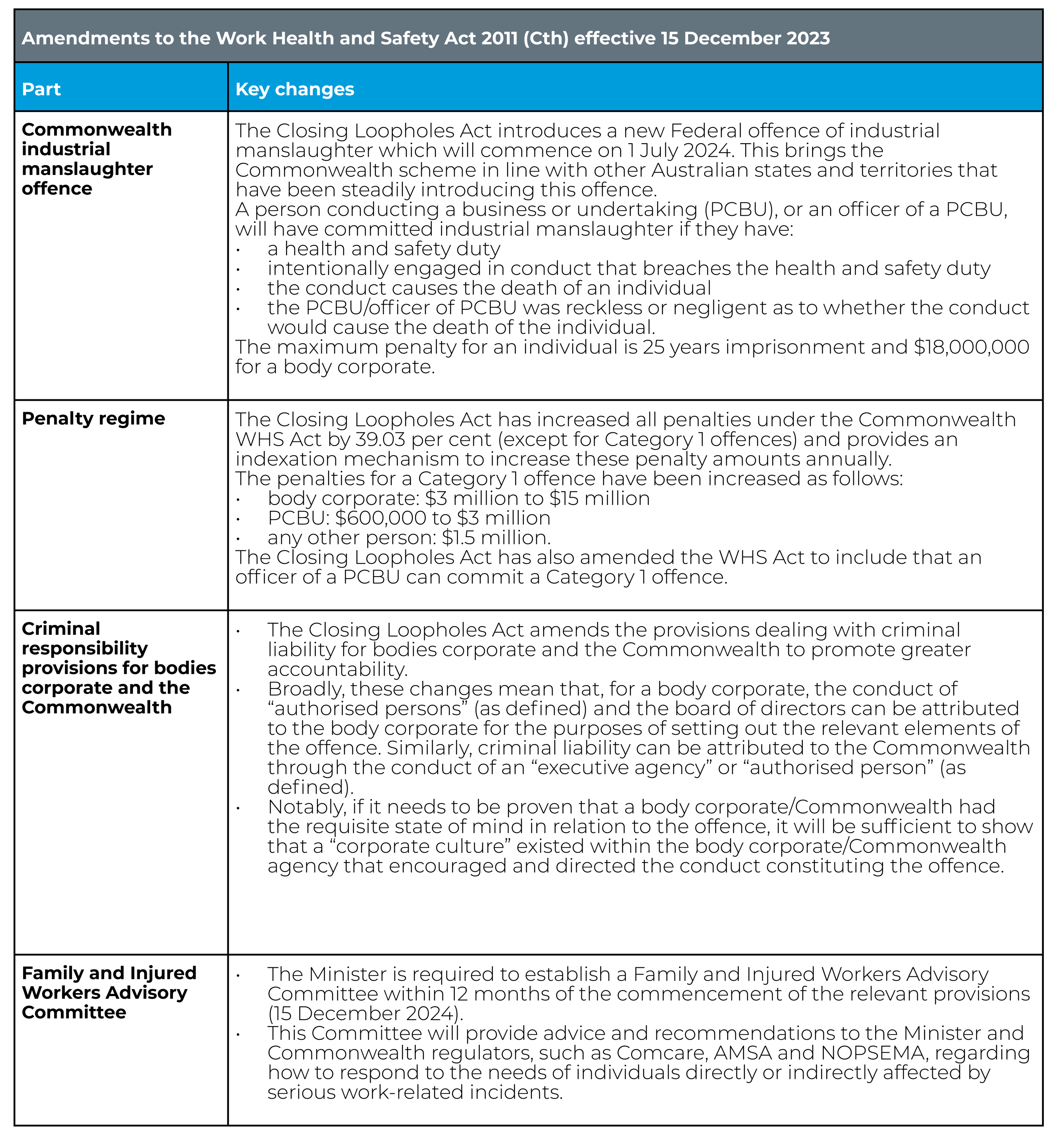 Some of the changes were referred to a Senate Committee, with its report tabled earlier this month. However, on 7 December 2023, the Bill was divided and some components were passed in the Federal Parliament and received Royal Assent on 14 December 2023. Those changes became the Fair Work Amendment (Closing Loopholes) Act 2023 (Closing Loopholes Act).