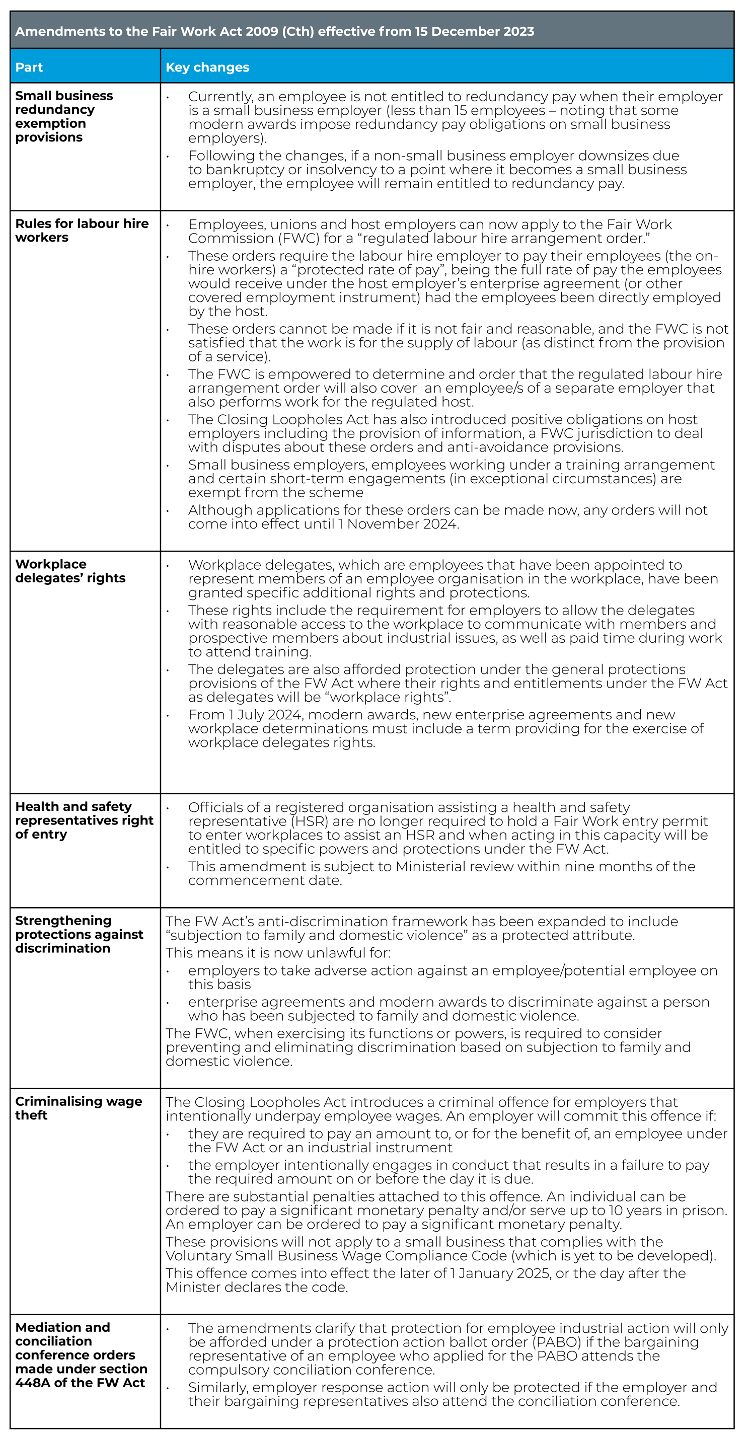In the latter half of 2023, the Federal Government introduced further changes contained in the Fair Work Amendment (Closing Loopholes) Bill 2023.